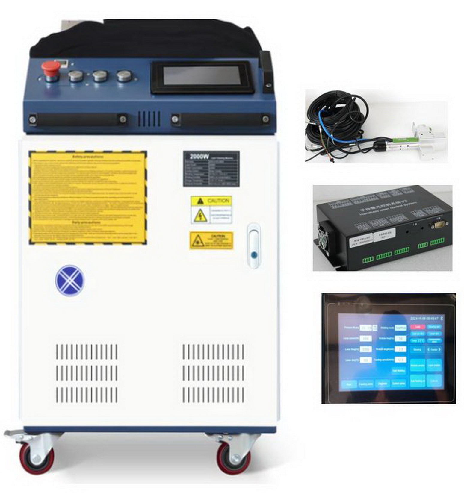 Converting a welding machine to a cleaning machine requires additional parts, including a cleaning gun, control box, and screen.